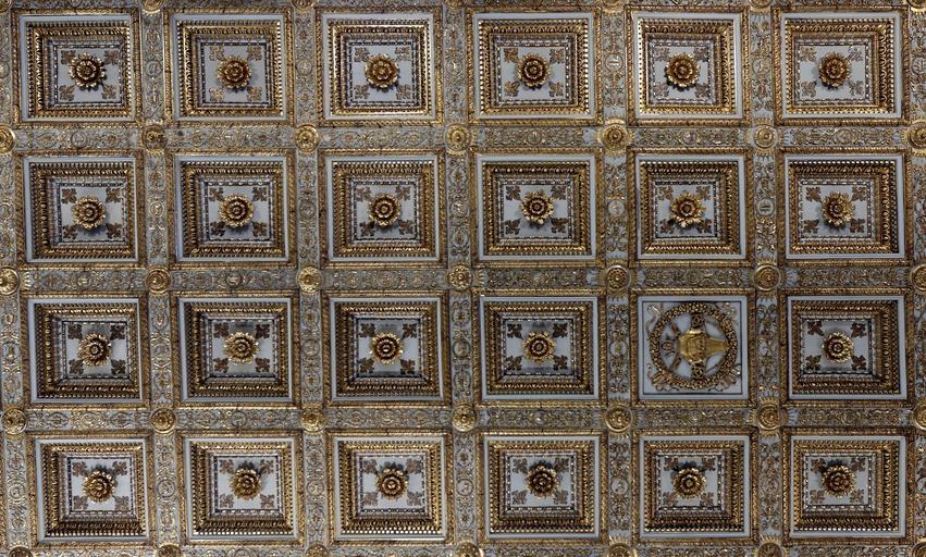Keywords: Ceiling SM Maggiore.jpg Caisson ceiling in the central nave of Basilica di Santa Maria Maggiore in Rome by Giuliano da Sangallo 16th century The ceiling was gilt with the first gold from Americas Plafond à caissons de la nef centrale de la basilique Sainte-Marie-Majeure à Rome Œuvre de Giuliano da Sangallo XVIe siècle Le plafond fut doré avec le premier or venu des Amériques own own picture Jastrow 2006 Public Domain Santa Maria Maggiore Rome - ceiling |