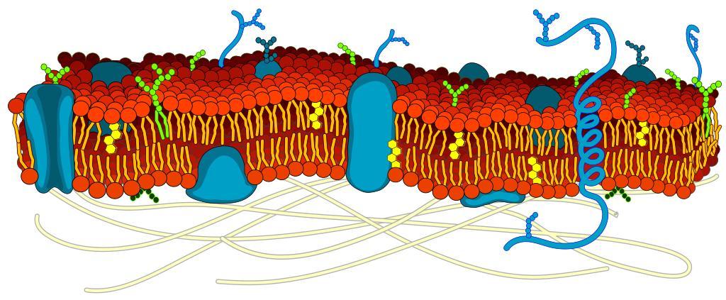 Keywords: Cell membrane detailed diagram blank.svg The cell membrane also called the plasma membrane or plasmalemma is a semipermeable lipid bilayer common to all living cells It contains a variety of biological molecules primarily proteins and lipids which are involved in a vast array of cellular processes It also serves as the attachment point for both the intracellular cytoskeleton and if present the cell wall Cell_membrane_detailed_diagram_en svg 50 2012-06-13 08 46 UTC Cell_membrane_detailed_diagram_en svg LadyofHats Mariana Ruiz derivative work Masur Removed lables Masur Cell_membrane_detailed_diagram_en svg LadyofHats Original upload log This image is a derivative work of the following images File Cell_membrane_detailed_diagram_en svg licensed with PD-user 2009-02-23T18 08 26Z Bibi Saint-Pol 877x361 487132 Bytes <nowiki> The cell membrane also called the plasma membrane or plasmalemma is a semipermeable lipid bilayer common to all living cells It contains a variety of biological molecules primarily protein</nowiki> Uploaded with derivativeFX Ultrastructure diagrams Cell membrane Lipid bilayers Semipermeable membrane |