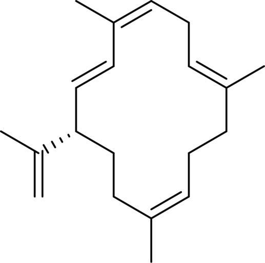 Keywords: Cembrenen.svg en Cembrenen structure pl Wzór strukturalny cembrenenu own Tomasz Dolinowski 2011-01-31 Cc-zero Diterpenes