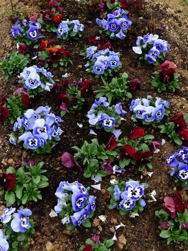 Keywords: cemetery grave old cemetery pansy viola wittrockiana flower plants violet viola violet plant violaceae blue light blue red