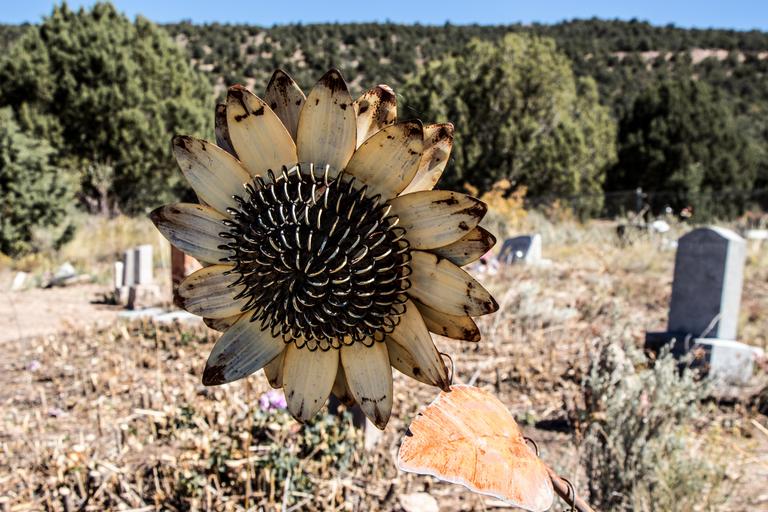 | Keywords: cemetery sunflower metal grave graveyard bereavement death funeral grief religion stone tomb flower burial gravestone headstone lonely memorial loss monument pine valley utah desert decoration tombstone dead marker day tree national summer leaves old ancient cedar tree brush bright orange yellow hot southwest wilderness |