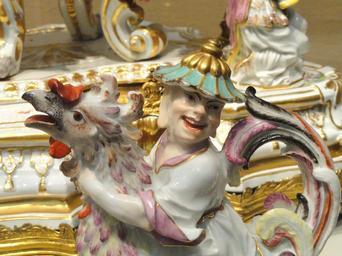 Keywords: Centerpiece and Stand with Pair of Sugar Caster and Oil or Vinegar Cruet, view 2, c. 1737, Meissen Porcelain Manufactory, modeled by Johann Joachim Kandler - Art Institute of Chicago - DSC00001.JPG Exhibit in the Art Institute of Chicago Chicago Illinois USA This artwork is in the public domain because the artist died more than 70 years ago Photography was permitted in the museum without restriction Daderot 2012-10-10 15 43 05 Daderot cc0 cc0 Meissen porcelain in the Art Institute of Chicago Meissen porcelain Cruet sets Johann Joachim Kaendler |