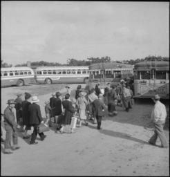 | Keywords: Centerville, California. Members of farm family board evacuation buses. Evacuees of Japanese ances . . . - NARA - 537585.jpg Scope and content The full caption for this photograph reads Centerville California Members of farm family board evacuation buses Evacuees of Japanese ancestry will be housed in War Relocation Authority centers for the duration General notes 537585 Local identifier 210-G-C238 Department of the Interior War Relocation Authority 02/16/1944 - 06/30/1946 NARA-Author Lange Dorothea 1895-1965 Photographer 1372774 <br /> Still Picture Records Section Special Media Archives Services Division NWCS-S National Archives at College Park 8601 Adelphi Road College Park MD 20740-6001 1942-05-09 Record group Record Group 210 Records of the War Relocation Authority 1941 - 1989 Record group ARC 537 Central Photographic File of the War Relocation Authority compiled 1942 - 1945 Series ARC 536000 File unit File unit ARC Variant control numbers NAIL Control Number NWDNS-210-G-C238 Other versions <gallery> File Centerville _California _Members_of_farm_family_board_evacuation_buses _Evacuees_of_Japanese_ances_ _ _ _-_NARA_-_537585 tif tif File Centerville _California _Members_of_farm_family_board_evacuation_buses _Evacuees_of_Japanese_ances_ _ _ _-_NARA_-_537585 jpg jpg </gallery> NARA-cooperation PD-USGov Japanese American internment processing in Centerville Alameda County California Buses in California Dorothea Lange Black and white photographs of groups |
