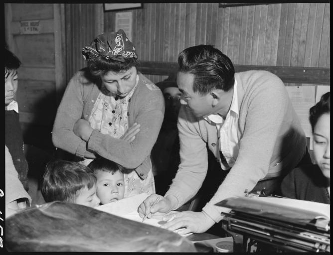 Keywords: Centerville, California. Scene in the Japanese American Citizens League local office. This office . . . - NARA - 537775.jpg Scope and content The full caption for this photograph reads Centerville California Scene in the Japanese American Citizens League local office This office is assisting the farmers of Japanese ancestry in this district to arrange their affairs for evacuation and to keep them posted on events Harry Konda officer of the league is disposing of a washing machine to a local Mexican farm laborer's wife General notes 537775 Local identifier 210-G-C457 Department of the Interior War Relocation Authority 02/16/1944 - 06/30/1946 NARA-Author Lange Dorothea 1895-1965 Photographer 1372774 <br /> Still Picture Records Section Special Media Archives Services Division NWCS-S National Archives at College Park 8601 Adelphi Road College Park MD 20740-6001 1942-04-09 Record group Record Group 210 Records of the War Relocation Authority 1941 - 1989 Record group ARC 537 Central Photographic File of the War Relocation Authority compiled 1942 - 1945 Series ARC 536000 File unit File unit ARC Variant control numbers NAIL Control Number NWDNS-210-G-C457 Other versions <gallery> File Centerville _California _Scene_in_the_Japanese_American_Citizens_League_local_office _This_office_ _ _ _-_NARA_-_537775 tif tif File Centerville _California _Scene_in_the_Japanese_American_Citizens_League_local_office _This_office_ _ _ _-_NARA_-_537775 jpg jpg </gallery> NARA-cooperation PD-USGov Japanese American internment processing in Centerville Alameda County California Dorothea Lange Japanese American Citizens League |