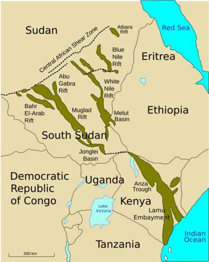 Keywords: Central African Rifts.svg en Sketch map of rifts in Central Africa formed in the Mezozoic to early Tertiary own Aymatth2 2010-12-20 Geological maps of Africa Maps needing South Sudan political boundaries Rifts