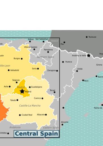 | Keywords: Central Spain WV map.svg en Wikivoyage regions map for Central Spain Color codes Castille-Leon ffe680 Madrid ffcc00 Castille-La Mancha ffeeaa Extremadura ff72af 2015-01-09 own Ypsilon from Finland File Central Spain WV map PNG png other versions cc-zero Uploaded with UploadWizard Travel maps of Spain |