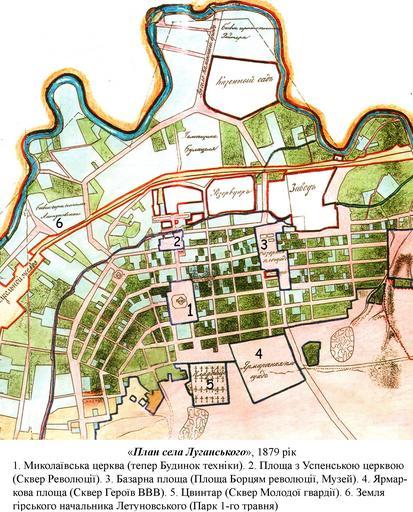 | Keywords: Centre Old Luhansk Map 1879.jpg uk «План села Луганського» 1879 ік 1 иколаївська це ква тепе Будинок техніки 2 Площа з Успенською це квою Скве Революції 3 База на площа Площа Бо цям еволюції узей 4 Я ма кова площа Скве Ге оїв ВВВ 5 Цвинта Скве олодої гва дії 6 Земля гі ського начальника Летуновського Па к 1-го т авня 2011-10-30 19 29 44 узей ве статобудівного заводу Луганськ author Custom license marker 2013 08 26 PD-Ukraine Uploaded with UploadWizard Maps of Luhansk | ||||