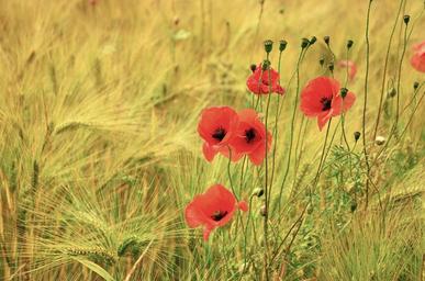 Keywords: cereals poppy poppies barley barley field cornfield agriculture field harvest nature spike field crops grain