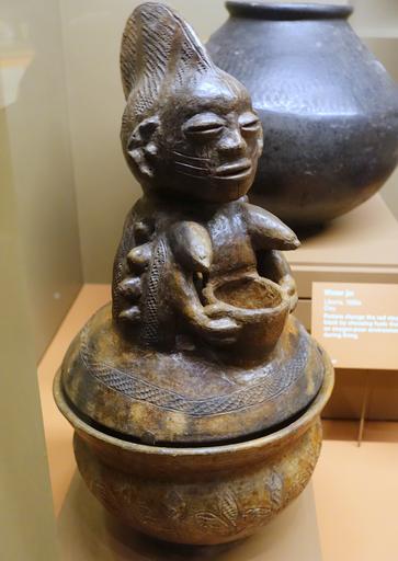 Keywords: Ceremonial lidded vessel with female devotee of the river god Eyinle, made by Abatan Odefunke Ayinke Ija, Oke-Odan, Nigeria, 1920s, clay - National Museum of Natural History, United States - DSC00463.jpg en Exhibit in the National Museum of Natural History Washington DC USA This artwork is in the public domain because the artist died more than 70 years ago Photography was permitted in the museum without restriction 2015-03-27 12 34 05 own Daderot other versions PD-old-70 cc-zero Ceramics in the National Museum of Natural History USA Ceramics of Nigeria |