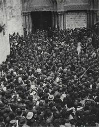 Keywords: Ceremony of the Holy Fire at the Holy Sepulchre (1905).jpg en Ceremony Of The 'Holy Fire' 1905 Greek Orthodox pilgrims at the entrance to the Church of the Holy Sepulchre awaiting the commencement of the Holy Fire ceremony The Turkish soldiers visible in the photograph attempt to maintain order pl Ceremonia Ognia Świętego Prawosławni pielgrzymi przed wejściem do bazyliki Grobu Świętego Rok 1905 http //www eretzyisroel org/~dhershkowitz/pic205 jpg author 1905 Holy Fire Historical images of Holy Sepulchre PD-old |
