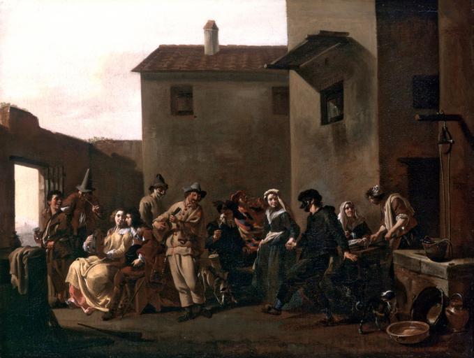 Keywords: Cerquozzi-danza en la trattoria.jpg Artwork creator Jan Miel century 17 oil canvas cm 51 66 Akademie der bildenden Künste Vienna object history credit line accession number http //www bildindex de/ +pkunstler cerquozzi 20+pkunstler michelangelo PD-old-100 Jan Miel Gemäldegalerie der Akademie der bildenden Künste Wien Images from Bildarchiv Foto Marburg Dance in paintings Taverns in art 17th-century oil on canvas paintings in Austria Bamboccianti |