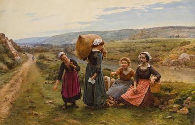 Keywords: César Pattein A mysterious letter 1905.jpg A mysterious letter Signed and dated 'César Pattein 1905' lower right oil on canvas 86 5 x 131 cm http //www bonhams com Bonhams 1905 César Pattein 1850-1931 PD-old-70-1923 Images from Bonhams César Pattein 1905 paintings Letters in art Carrying in art Paintings of country roads Paintings of women sitting on the ground outdoors Paintings of peasants |