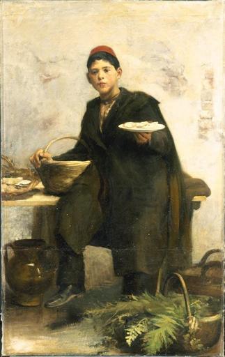 Keywords: Cesare Tallone - The Oyster Seller.jpg Artwork Creator Cesare Tallone between 1884 1885 Oil on canvas cm 153 95 5 http //www sothebys com/it/auctions/ecatalogue/2005/19th-century-paintings-and-sculpture-mi0244/lot 110 lotnum html object history exhibition history credit line accession number Sotheby's PD-old-auto-1923 1919 Cesare Tallone 1880s paintings Images from Sotheby's |