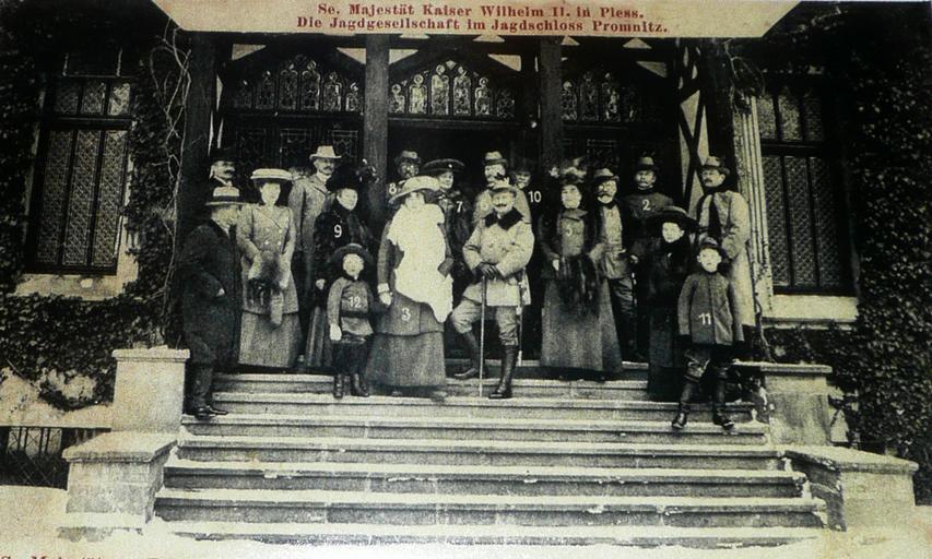 Keywords: Cesarz Wilhelm II in Promnice.jpg en Cesarz Wilhelm II in the Hunting Castle Promnice in 1908 Own Brücke-Osteuropa 2009-09-15 Castle Promnice Z