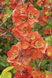 Keywords: chaenomeles japonica ornamental quince bush red orange flowers japanese ornamental quince