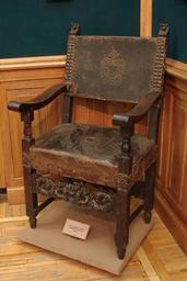 | Keywords: Chair upholstered in leather 6.jpg en Chair upholstered in leather with brass plaques XVIII century ru К есло обитое кожей с медными бляшками XVIII век own Sergeev Pavel 2009 Russian museum photo Wooden armchairs Upholstered leather Leather armchairs 1700s Leather embossing 18th-century furniture Seating furniture armchairs leather Peter I house in Vologda Peter I of Russia's items Furniture in museums of Russia Seating furniture armchairs leather | ||||