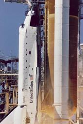 Keywords: challenger et explosion external tank externaltank o-ring seal oringseal putty srb sts-51l sts51l solid rocket booster solidrocketbooster Close-up view of the liftoff of the Shuttle Challenger on mission STS-51L taken from camera site 39B-2/T3. From this camera position, a cloud of grey-brown smoke can be seen on the right side of the Solid Rocket Booster (SRB) on a line directly across from the letter "U" in United States. This was the first visible sign that an SRB joint breach may have occured. On January 28, 1986 frigid overnight temperatures caused normally pliable rubber O-ring seals and putty that are designed to seal and establish joint integrity between the Solid Rocket Booster (SRB) joint segments, to become hard and non- flexible. At the instant of SRB ignition, tremendous stresses and pressures occur within the SRB casing and especially at the joint attachmentment points. The failure of the O-rings and putty to "seat" properly at motor ignition, caused hot exhaust gases to blow by the seals and putty. During Challenger's ascent, this hot gas "blow by" ultimately cut a swath completely through the steel booster casing; and like a welder's torch, began cutting into the External Tank (ET). It is believed that the ET was compromised in several locations starting in the aft at the initial point where SRB joint failure occured. The ET hydrogen tank is believed to have been breached first, with continuous rapid incremental failure of both the ET and SRB. A chain reaction of events occurring in milliseconds culminated in a massive explosion. The orbiter Challenger was instantly ejected by the blast and went askew into the supersonic air flow. These aerodynamic forces caused structural shattering and complete destruction of the orbiter. Though it was concluded that the G-forces experienced during orbiter ejection and break-up were survivable, impact with the ocean surface was not. Tragically, all seven crewmembers perished. Image #: Date: January 28, 1986 Close-up view of the liftoff of the Shuttle Challenger on mission STS-51L taken from camera site 39B-2/T3. From this camera position, a cloud of grey-brown smoke can be seen on the right side of the Solid Rocket Booster (SRB) on a line directly across from the letter "U" in United States. This was the first visible sign that an SRB joint breach may have occured. On January 28, 1986 frigid overnight temperatures caused normally pliable rubber O-ring seals and putty that are designed to seal and establish joint integrity between the Solid Rocket Booster (SRB) joint segments, to become hard and non- flexible. At the instant of SRB ignition, tremendous stresses and pressures occur within the SRB casing and especially at the joint attachmentment points. The failure of the O-rings and putty to "seat" properly at motor ignition, caused hot exhaust gases to blow by the seals and putty. During Challenger's ascent, this hot gas "blow by" ultimately cut a swath completely through the steel booster casing; and like a welder's torch, began cutting into the External Tank (ET). It is believed that the ET was compromised in several locations starting in the aft at the initial point where SRB joint failure occured. The ET hydrogen tank is believed to have been breached first, with continuous rapid incremental failure of both the ET and SRB. A chain reaction of events occurring in milliseconds culminated in a massive explosion. The orbiter Challenger was instantly ejected by the blast and went askew into the supersonic air flow. These aerodynamic forces caused structural shattering and complete destruction of the orbiter. Though it was concluded that the G-forces experienced during orbiter ejection and break-up were survivable, impact with the ocean surface was not. Tragically, all seven crewmembers perished. Image #: Date: January 28, 1986