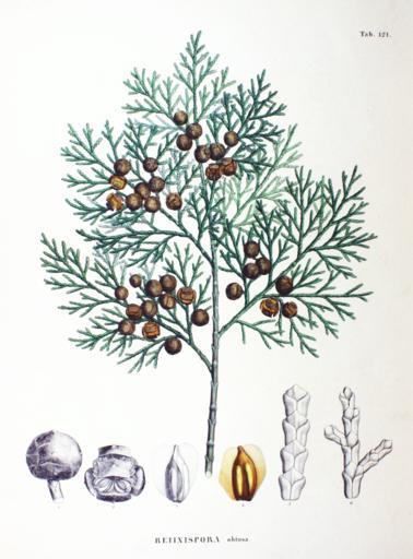 Keywords: Chamaecyparis obtusa SZ121.png Plate from book Flora Japonica Sectio Prima Tafelband 1870 Philipp Franz von Siebold and Joseph Gerhard Zuccarini see http //www biolib de PD-Art Chamaecyparis obtusa illustrations Flora Japonica Cupressaceae botanical illustrations |