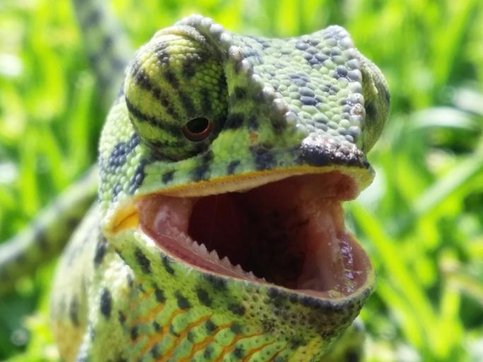 Keywords: chameleon reptile green camouflage animal wildlife wild zoology species wilderness environment outdoors nature head
