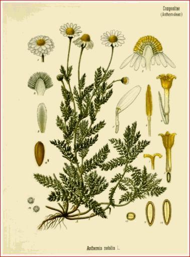 Keywords: ChamomileRoman.png Römische Kamille A blühende Pflanze 1 gefülltes Körbchen; 2 Körbchen im Längsschnitt; 3 Randblüte; 4 Scheibenblüte mit Stützblatt; 5 dieselbe im Längsschnitt; 6 Staubblatt; 7 Narbe; 8 Blütenboden mit Spreublättern im Längsschnitt; 9 Spreublättchen Vorderansicht; 10 Früchtchen natürlicher Grösse und vergrössert; 11 und 12 Längsschnitte desselben; 13 Querschnitt desselben; 14 Pollen Chamaemelum nobile Ромашка имская A цветущее астение; 1 ко зинка; 2 ко зинка в п одольном аз езе; 3 язычковый цветок; 4 т убчатый цветок с обе ткой; 5 то же в п одольном аз езе; 6 тычинка; 7 ыльце; 8 цветоложе с п ицветниками в п одольном аз езе; 9 п ицветник вид спе еди; 10 плод семянка в нат величину и увелич ; 11 и 12 то же в п одольных аз езах; 13 то же в попе ечном аз езе; 14 пыльца 1897 Köhler's Medizinal-Pflanzen Franz Eugen Köhler PD-old Köhler's Medizinal-Pflanzen/Extention images Chamaemelum nobile - botanical illustrations Original upload log wikitable - - 2010-12-02 18 25 53 390 × 527 66175 bytes Metkaasic <nowiki> en Chamomille www midwestbotanicals com Pam Taylor </nowiki> |