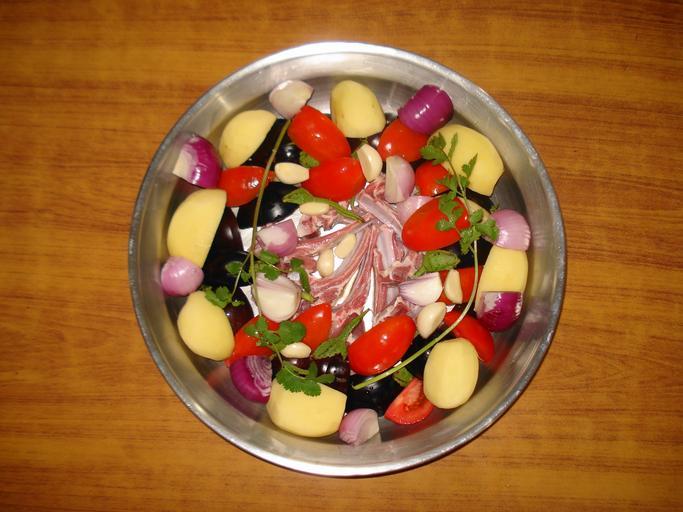 Keywords: Chanakhi Ingredients.JPG en Chanakhi ingredients own Miansari66 Cc-zero Chanakhi Food ingredients of Georgia Colorful food Round arrangements food