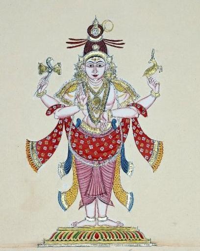 Keywords: Chandrashekhara.jpg en Candraśekharamūrti stands on a low lotus plinth with his weight carried evenly on both feet On the left side of his topknot in the immediate proximity of Ganga's face is the crescent moon In his upper right and left hands the god carries the damaru and the mriga his lower right hand is in abhaya and his lower left in varada mudra Candraśekharamūrti is dressed in a dhoti with side sashes an angavastra is draped on his elbow and he wears the usual ornaments http //www britishmuseum org/research/search_the_collection_database/search_object_details aspx objectid 3058363 partid 1 output Places 2f 2fOR 2f 2f41361 2f 2f41361-2-20 2f 2fPainted+in+Thanjavur 2f 2f 2f 2f 2f 2f orig 2fresearch 2fsearch_the_collection_database 2fadvanced_search aspx currentPage 3 numpages 10 unknown author ~ 1820 PD-art Chandrashekhara |