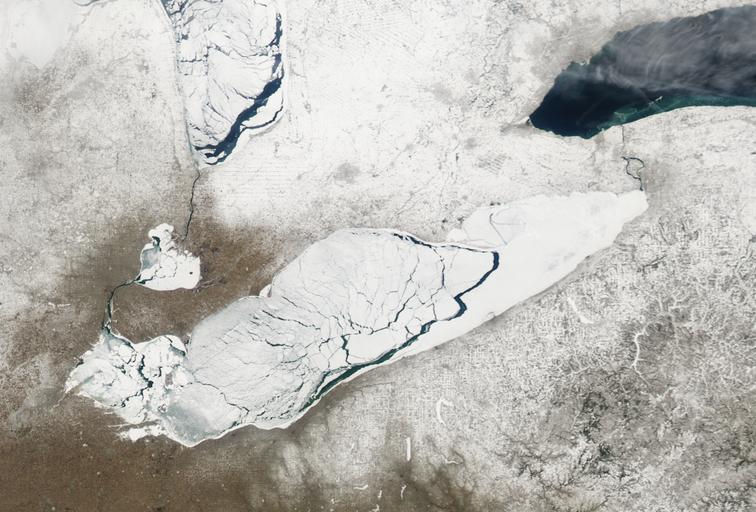 | Keywords: Changing Face of Lake Erie, Image of the Day DVIDS835621.jpg en In early March 2007 ice advanced and retreated over the surface of Lake Erie along the United States-Canada border The Moderate Resolution Imaging Spectroradiometer modis gsfc nasa gov MODIS on NASA's aqua nasa gov/ Aqua satellite captured cloud-free images of the changing lake on March 9 top and March 13 bottom In the image taken on March 9 ice almost completely covers the lake but water peeks through large cracks stretching across the water body In the image taken on March 13 only thin translucent layers of ice remain -- in the eastern half and near the western tip Less dramatic but still noticeable is the lighter snow cover around the lake in the later image In the March 13 image roadways near the lake especially to the north and east can be seen more easily According to the www great-lakes net/lakes/ref/eriefact html Great Lakes Information Network Lake Erie is the shallowest of all the Great Lakes Its average depth is 19 meters 62 feet and its maximum depth is 64 meters 210 feet In contrast Lake Superior has an average depth of 147 meters 483 feet and a maximum depth of 406 meters 1 332 feet Erie's shallowness not only makes it more prone to fluctuating water levels but also enables this lake to freeze and thaw more readily than its neighbors On March 5 just four days before icing over Lake Erie had been about as ice-free as it would again appear on March 13 For images of the lake on March 5 see the MODIS Rapid Response images of the rapidfire sci gsfc nasa gov/subsets/ USA3/2007064/USA3 2007064 terra western half and rapidfire sci gsfc nasa gov/subsets/ USA4/2007064/USA4 2007064 terra eastern half People who live to the south and east of the Great Lakes can spend much of the winter digging out their driveways thanks to a phenomenon called www islandnet com/~see/weather/elements/lkefsnw2 htm lake effect snow When cold air such as an air mass from the Arctic passes over the open water of the lakes it picks up moisture and heat On the downwind side of the lakes the moisture in the air condenses into snow As long as the lakes are ice-free they can fuel lake-effect snow storms from fall until spring NASA Identifier lakeerie_amo_2007072_geo 2011-07-08 Glenn Research Center https //www dvidshub net/image/835621 835621 2013-02-08 04 31 WASHINGTON D C US PD-USGov Frozen Lake Erie Images from DoD uploaded by Fæ Satellite pictures of the Great Lakes NASA MODIS images of North America |