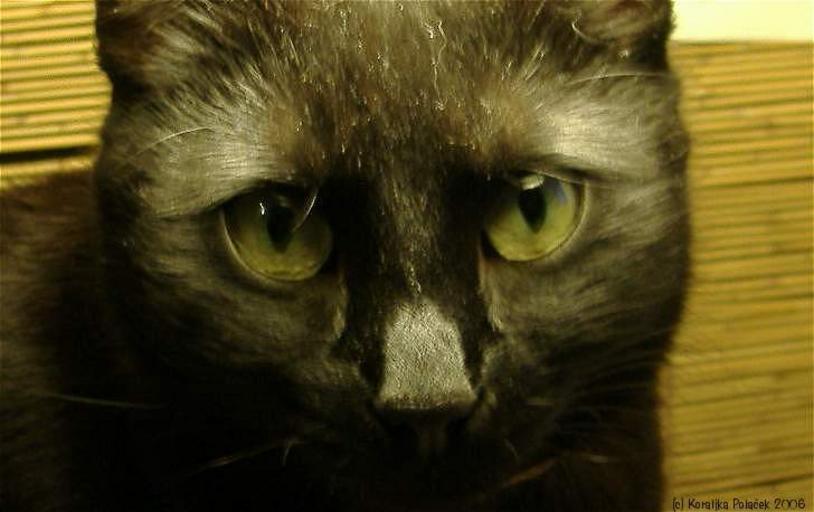 Keywords: Chantal - black cat's eyes.jpg Magical emerald eyes of my black female cat Chantal She is 1 5 years old now Photo XII 2006 Own 2007-03-14 User Klarissae Solid black cats Domestic cats