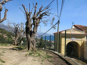 Keywords: Chapelle de la Pausa & oliviers.jpg en Chapel de la Pausa in Roquebrune-Cap-Martin Alpes-Maritimes France On the left a garden with olive trees fr Chapelle de la Pausa à Roquebrune-Cap-Martin Alpes-Maritimes Sur la gauche un jardin avec des oliviers sf 2015-04-08 Tangopaso 43 763654 7 46428 heading E Chapelle de la Pausa Roquebrune Olea europaea orchards in Alpes-Maritimes Roquebrune |