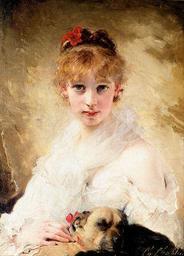 Keywords: Chaplin-Her Favourite Dog.jpg century 19 Oil on canvas 18 x 12 7/8 inches 46 x 33 cm private collection accession number object history credit line http //www artrenewal org/asp/database/contents asp Art Renewal Center Museum http //www artrenewal org/asp/database/image asp id 13330 image 13330 Public domain PD-old-100 Charles Joshua Chaplin 19th-century paintings in unidentified private collections 1891< 19th-century portrait paintings of unidentified women 1891< 19th-century portrait paintings not categorised by year 19th-century oil portraits of women at half length 1891< 19th-century portrait paintings with dogs 1891< Pictures from the Art Renewal Center Portrait paintings of women holding dogs 1891< Portrait paintings of women with hair flowers 1891< 19th-century women looking at viewer in art |