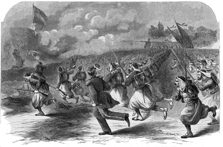 View Original:Charge_of_Duryee's_Zouaves_(Fifth_Regiment_New_York_Volunteers)_at_the_Battle_of_Great_Bethel.jpg (1700x1123)
