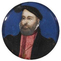 Keywords: people portrait Charles Brandon, 1st Duke of Suffolk (c. 1484 – 22 August 1545), was the son of Sir William Brandon and Elizabeth Bruyn. Through his third wife Mary Tudor he was brother-in-law to Henry VIII. His father was the standard-bearer of King Henry VII and was slain by Richard III in person on Bosworth Field. Charles Brandon died of unknown causes at Guildford. Charles Brandon was brought up at the court of Henry VII. He is described by Dugdale as "a person comely of stature, high of courage and conformity of disposition to King Henry VIII, "with whom he became a great favourite". Brandon held a succession of offices in the royal household, becoming Master of the Horse in 1513, and received many valuable grants of land. On 15 May 1513, he was created Viscount Lisle, having entered into a marriage contract with his ward, Elizabeth Grey, suo jure Viscountess Lisle, who, however, refused to marry him when she came of age. He distinguished himself at the sieges of Thérouanne and Tournai in the French campaign of 1513. One of the agents of Margaret of Savoy, governor of the Netherlands, writing from before Thérouanne, reminded her that Lord Lisle was a "second king" and advised her to write him a kind letter. At this time, Henry VIII was secretly urging Margaret to marry Lisle, whom he created Duke of Suffolk, although he was careful to disclaim (on 4 March 1514) any complicity in the project to her father, Maximilian I, Holy Roman Emperor. After his marriage to Mary, Suffolk lived for some years in retirement, but he was present at the Field of the Cloth of Gold in 1520. In 1523 he was sent to Calais to command the English troops there. He invaded France in company with Count de Buren, who was at the head of the Flemish troops, and laid waste the north of France, but disbanded his troops at the approach of winter. Unlike his wife, Suffolk was entirely in favour of Henry's divorce from Catherine of Aragon[citation needed], and in spite of his obligations to Wolsey he did not scruple to attack him when his fall was imminent. The Cardinal, who was acquainted with Suffolk's private history, reminded him of his ingratitude: "If I, simple Cardinal, had not been, you should have had at this present no head upon your shoulders wherein you should have had a tongue to make any such report in despite of us." After Wolsey's disgrace, Suffolk's influence increased daily. He was sent with Thomas Howard, 3rd Duke of Norfolk, to demand the Great Seal from Wolsey; the same noblemen conveyed the news of Anne Boleyn's marriage to King Henry, after his divorce from Queen Catherine, and Suffolk acted as High Steward at the new Queen's coronation. He was one of the commissioners appointed by Henry to dismiss Catherine's household, a task he found distasteful. He supported Henry's ecclesiastical policy, receiving a large share of the lands after the dissolution of the monasteries. In 1544, he was for the second time in command of an English army for the invasion of France. He died at Guildford, Surrey, on 24 August in the following year. At Henry VIII's expense he was buried at Windsor in St George's Chapel. Suffolk took part in the jousts which celebrated the marriage of Mary Tudor, Henry's sister, with Louis XII of France. He was accredited to negotiate various matters with Louis, and on Louis' death was sent to congratulate the new King, Francis I, and to negotiate Mary's return to England. Love between Suffolk and the young Dowager Queen Mary had existed before her marriage, and Francis roundly charged him with an intention to marry her. Francis, perhaps in the hope of Queen Claude's death, had himself been one of her suitors in the first week of her widowhood, and Mary asserted that she had given him her confidence to avoid his importunities. Francis and Henry both professed a friendly attitude towards the marriage of the lovers, but Suffolk had many political enemies, and Mary feared that she might again be sacrificed to political considerations. The truth was that Henry was anxious to obtain from Francis the gold plate and jewels which had been given or promised to the Queen by Louis in addition to the reimbursement of the expenses of her marriage with the King; and he practically made his acquiescence in Suffolk's suit dependent on his obtaining them. The pair cut short the difficulties by a private marriage, which Suffolk announced to Thomas Wolsey, who had been their fast friend, on 5 March 1515. Suffolk was saved from Henry's anger only by Wolsey, and the pair eventually agreed to pay to Henry £24,000 in yearly instalments of £1000, and the whole of Mary's dowry from Louis of £200,000, together with her plate and jewels. They were openly married at Greenwich Hall on 13 May. The Duke had been twice married already, to Margaret Neville (the widow of John Mortimer) and to Anne Browne, to whom he had been betrothed before his marriage with Margaret Mortimer. Anne Browne died in 1511, but Margaret Mortimer, from whom he had obtained a divorce on the ground of consanguinity, was still living. He secured in 1528 a bull from Pope Clement VII assuring the legitimacy of his marriage with Mary Tudor and of the daughters of Anne Browne, one of whom, Anne, was sent to the court of Margaret of Savoy. After the death of Mary Tudor on 24 June 1533 he married in 1534 his ward Catherine Willoughby (1520–1580), suo jure Baroness Willoughby de Eresby, then a girl of fifteen. By Catherine Willoughby he had two sons who showed great promise, Henry (1535–1551) and Charles (c. 1537 – 1551), Dukes of Suffolk. They died of the sweating sickness within an hour of one another. Charles Brandon, 1st Duke of Suffolk (c. 1484 – 22 August 1545), was the son of Sir William Brandon and Elizabeth Bruyn. Through his third wife Mary Tudor he was brother-in-law to Henry VIII. His father was the standard-bearer of King Henry VII and was slain by Richard III in person on Bosworth Field. Charles Brandon died of 
