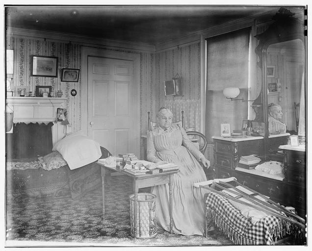 Keywords: Charles Henry Currier 01945v.jpg en Portrait of an elderly woman About This Item Obtaining Copies Access to Original Title Portrait of an elderly woman Creator s Currier Charles Henry 1851-1938 photographer Date Created/Published between 1890 and 1900 Medium 1 photographic print Summary Elderly woman full-length portrait seated in chair in bedroom with crutches on low piece of furniture in front of her Reproduction Number LC-C801-41 b w film copy neg LC-DIG-ppmsca-01945 scan from b w film copy neg LC-DIG-ppmsca-02967 scan from adjusted print from b w film copy neg in Publishing Office Rights Advisory No known restrictions on publication Call Number LOT 11337-2 item P P Repository Library of Congress Prints and Photographs Division Washington D C 20540 USA Notes o Charles Currier Collection o Published in American women a Library of Congress guide for the study of women's history and culture in the United States / edited by Sheridan Harvey et al Washington Library of Congress 2001 p 205 Subjects o Older people--1890-1900 o Women--1890-1900 Format o Photographic prints--1890-1900 o Portrait photographs--1890-1900 http //www loc gov/pictures/item/2002712198/ Charles Henry Currier between 1890 1900 Charles Henry Currier Crutches PD-old |