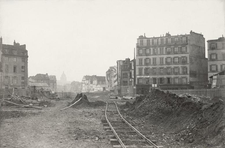 | Keywords: Charles Marville, Boulevard Henri IV, de la rue Sully, ca. 1853–70.jpg Photograph en Looking along rail tracks with earth mounds nd builders rubble on each side buildings in background building with shuttered windows on right with sign Ouverture de la Boulangerie signs for other businesses on walls of buildings depicted people depicted place Boulevard Henri-IV Paris France circa 1876 photographic print mounted on cardboard albumen silver 24 2 x 35 9 cm or smaller Institution State Library of Victoria accession number H88 19/2b SLVIC-digitalimage 115121 H88 19/2b object history exhibition history credit line Gift; Government of France; 1880 Hand inscribed in black ink on leaf u l Presented / April 8th 1881 / illeg / September 1881 Photographer unknown but probably Charles Marville Undated dates assigned from time of event in images Title hand inscribed on label adhered to portfolio page beneath image Information field In collection Photographic views of Paris PD-100 Boulevard Henri-IV Paris Remote views of the Panthéon de Paris Rail tracks in Paris Charles Marville - Photographic views of Paris Images of Paris from the State Library of Victoria |