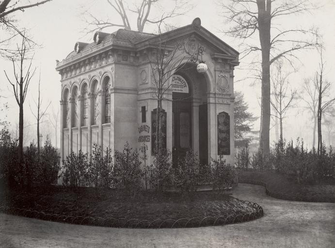 | Keywords: Charles Marville, Cabinets water closets Dorion, Champs-Elysées, ca. 1865.jpg Public toilet in park with arched windows and portico pediment at roof with woman's face in tympanum glass panel doors garden path and lawn in foreground ~ 1865 1 photographic print mounted on cardboard albumen silver Size cm 27 36 2 Institution State Library of Victoria object history exhibition history credit line Gift; Government of France; 1881 SLVIC-digitalimage 112669 H2011 126/12 Title on contents page Catégorie G No 12 Cabinets water closets Dorion Champs-Elysées Photographer's blind stamp below image Title printed on slip of paper pasted to album page Not dated but circa 1865 accession number H2011 126/12 PD-100 Public toilets in Paris 1865 ca Buildings in the Jardins des Champs-Élysées 1865 ca Édicules établis sur la voie publique et dans les promenades Images of Paris from the State Library of Victoria |