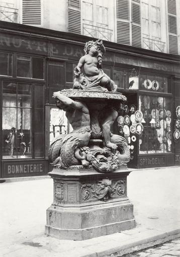 | Keywords: Charles Marville, Fontaine No. 1 Rue du Faubourg-Saint-Martin, ca. 1865.jpg Photograph en Cast iron fountain on curb of city street plinth supportingmale figures with fish tails supporting bowl holding a child figure with shells Inscription on plinth Shop front in background depicted people depicted place Rue du Faubourg-Saint-Martin Paris France ~ 1865 photographic print mounted on cardboard albumen silver 34 x 24 cm Institution State Library of Victoria accession number H2011 126/16 SLVIC-digitalimage 112681 H2011 126/16 Title on contents page Catégorie H No 16 et 16 illeg Fontaine No 1 Rue du Faubourg St Martin fonte object history exhibition history credit line Gift; Government of France; 1881 Photographer's blind stamp below image Title printed on slip of paper pasted to album page Not dated but circa 1865 Information field In collection Ville de Paris Édicules établis sur la voie publique et dans les promenades PD-100 Rue du Faubourg-Saint-Martin Paris Fountains in Paris 10e arrondissement Cast iron in Paris Édicules établis sur la voie publique et dans les promenades Images of Paris from the State Library of Victoria |