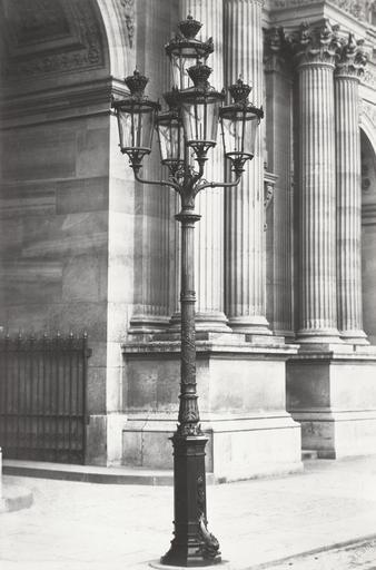 | Keywords: Charles Marville, Louvre, Place du Carrousel, 1878.jpg Photograph en Wrought iron lamp post supporting 5 lamps on path depicted people depicted place Place du Carrousel Paris France 1878 photographic print mounted on cardboard albumen silver 35 5 x 26 5 cm accession number H2011 78/56 SLVIC-digitalimage 109528 H2011 78/56 Title on contents page Candélabre à 5 branches Louvre Institution State Library of Victoria object history exhibition history credit line Gift; Government of France; 1881 Information field In collection Ville de Paris Collection des appareils d'éclairage au gaz établis sur la voie publique PD-100 Historical images of Place du Carrousel Historical photographs of the Louvre Collection des appareils d'éclairage au gaz établis sur la voie publique Images of Paris from the State Library of Victoria |