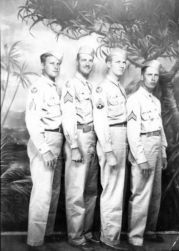 | Keywords: charles chuck lawrence special collection photo blackandwhite groupshot people monochrome outdoor black and white Catalog #: 09_02059 Title: Charles ""Chuck"" Lawrence Special Collection Photo Additional Information: Portrait of four men in military uniform. Charles lawrence is second from left, Charles Lawrence served in the Army Air Corps as a tank operator during World War II, Tags: Charles ""Chuck"" Lawrence Special Collection Photo Repository: San Diego Air and Space Museum Archive Catalog #: 09_02059 Title: Charles ""Chuck"" Lawrence Special Collection Photo Additional Information: Portrait of four men in military uniform. Charles lawrence is second from left, Charles Lawrence served in the Army Air Corps as a tank operator during World War II, Tags: Charles ""Chuck"" Lawrence Special Collection Photo Repository: San Diego Air and Space Museum Archive |
