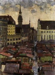 Keywords: Charles Vetter Viktualienmarkt.jpg Der Viktualienmarkt in München oil on canvas 51 x 37 cm Viktualienmarkt Peterskiche Altes Rathaus Heiliggeistkirche http //www hampel-auctions com Creator Charles Vetter PD-art PD-old-auto 1941 Viktualienmarkt Altes Rathaus München Charles Vetter Cityscape paintings in Germany Paintings not categorised by year Paintings of markets Images from Hampel Auctions Old views of Munich |