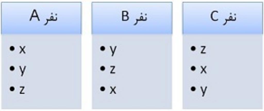 Keywords: Chart SocialWelfareTheorem.JPG fa ترجیحات افراد در رای گیری اکثریت بین سه تخصیص y، x و z ؛ به ترتیب از بالا به پایین own علی قشنگ آسیابر 1391-05-17 Cc-zero Uncategorized 2014 June 7