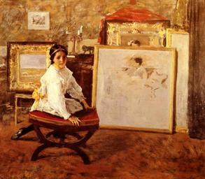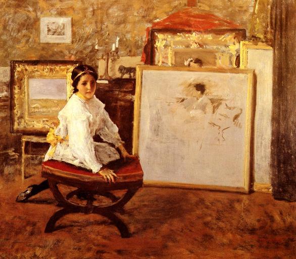 Keywords: Chase William Merritt Did You Speak To Me 1897.jpg Artwork Creator William_Merritt_Chase Summer of 1897 oil canvas cm 96 52 109 22 Butler Institute of American Art accession number object history credit line page is/was http //en wikipedia org/w/index php title Image 3AChase_William_Merritt_Did_You_Speak_To_Me_1897 jpg here original upload date Original uploader was User at http //en wikipedia org en wikipedia This image is in the public domain; PD-ART PD-old-auto 1916 Painters in art William Merritt Chase Butler Institute of American Art Paintings of paintings Paintings of female models in the artist's studio |