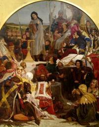 View Original:'Chaucer_at_the_Court_of_Edward_III',_oil_on_canvas_painting_by_Ford_Madox_Brown,_1847-1851,_Art_Gallery_of_New_South_Wales.jpg (1204x1546)