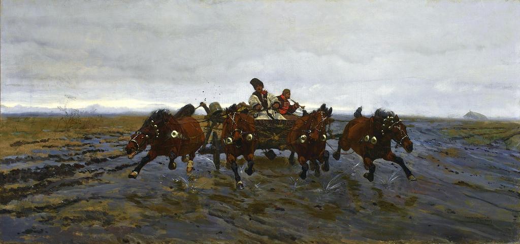 Keywords: Chełmoński Four-in-hand.jpg Artwork Creator Józef Chełmoński 1880 oil canvas cm 52 3 109 Institution National Museum Warsaw 1 accession number MP 1927 object history ProvenanceEvent purchase National Museum in Warsaw credit line JOSEPH CHEŁMOŃSKI / 1880 r Paris signature/date/location bottom right http //cyfrowe mnw art pl/dmuseion/docmetadata id 4994 cyfrowe mnw art pl See below PD-old-100-1923 1914 DEFAULTSORT 1880; Four-in-hand High-resolution images from the National Museum in Warsaw Paintings by Józef Chełmoński in the National Museum in Warsaw 1880 paintings Chełmoński Józef 1880s paintings from Poland Chełmoński Józef Paintings of Ukrainian peasants Paintings of horse driving Four abreast driving Ukraine in art Ethnography of Ukraine |