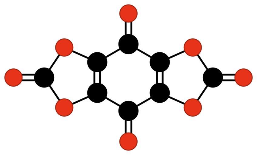 Keywords: Chemfm tetrahydroxy 1 4 benzoquinone biscarbonate.svg Molecular diagram of tetrahydroxy-1 4-benzoquinone biscarbonate For the oxocarbon Wikipedia article Own 2009-07-14 Jorge Stolfi Carbon oxides Quinones Organocarbonates