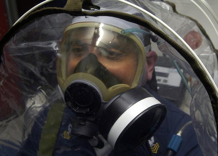 Keywords: Chemical, Biological and Radiological equipment test DVIDS98877.jpg en Petty Officer 1st Class Jorge Seda aviation maintenance administrationman assigned to the Aircraft Intermediate Maintenance Department tests a gas mask during a Chemical Biological and Radiological equipment test aboard Nimitz-class aircraft carrier USS Theodore Roosevelt Theodore Roosevelt is conducting carrier qualifications off the coast of Virginia 2008-03-02 Petty Officer 3rd Class John Suits https //www dvidshub net/image/98877 080302-N-+++++-035 2008-07-01 01 10 USNORTHCOM AT SEA PD-USGov-Military-Navy MCU-2/P Protective Mask Images from DoD uploaded by Fæ |