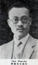 Keywords: Chen Mingshu2.jpg en Chen Mingshu Ch'en Ming-shu Zhenru 1889 - 1965 ja 陳銘枢 字 如 1889 - 1965 zh-hans 陈铭枢 字 如 1889 - 1965 zh-hant 陳銘樞 字 如 1889 - 1965 Who's Who in China 4th ed The China Weekly Review Shanghai 1931 p 58 中国名人录 第四版,上海密勒氏评论报,1931年 58页 中 名人錄 第四版,上海密勒氏評論報,1931年 58頁 Unknown; scanned by 天竺鼠 <span class signature-talk >talk</span> 10 41 27 November 2010 UTC No later than 1931; scan created on 2010 11 27 Chen Mingshu PD-Japan-oldphoto |