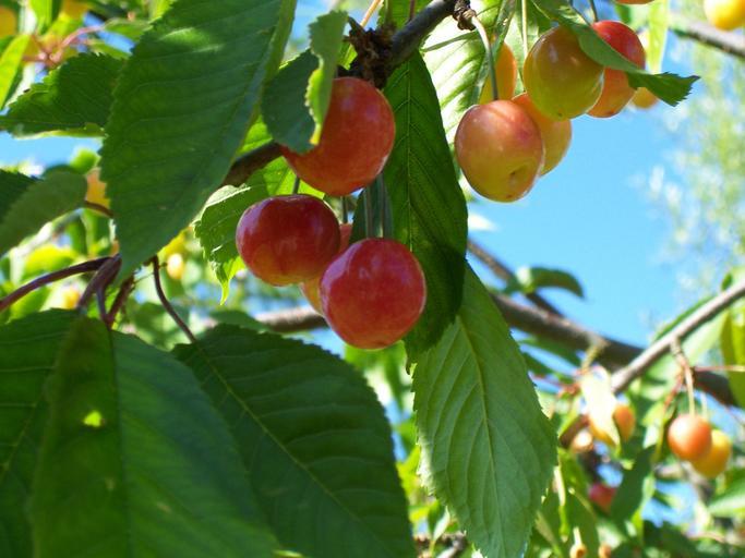 Keywords: cherries fruits cherry sweet cherry summer fruit tree garden sweet cherries leaves delicious fruit red green healthy
