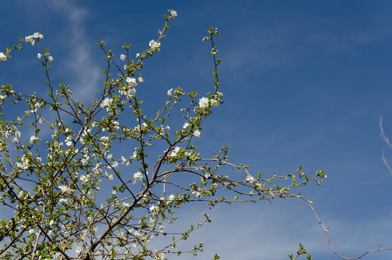Keywords: cherry bloom white flowers sky blue garden flower spring the leaves of the branch