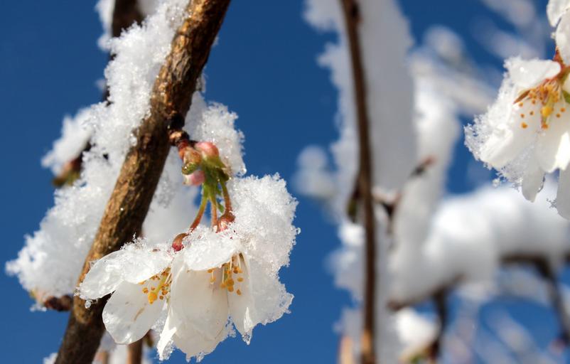Keywords: cherry blossom japanese cherry trees blossom bloom spring branch snow cold nature