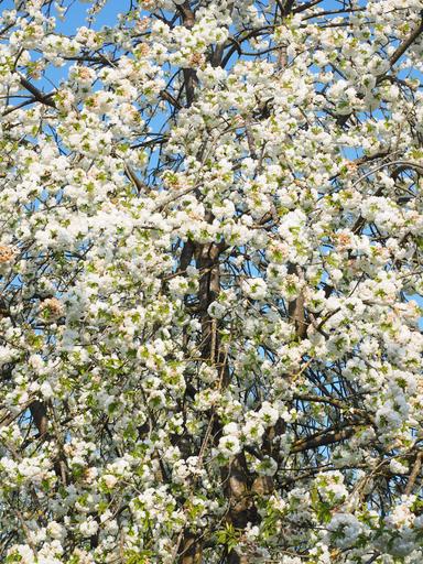 Keywords: cherry blossom white cherry spring blossom bloom white blossom bloom tree blossom branches herrlich overflowing lush blütenmeer flower tree summer day sunny day